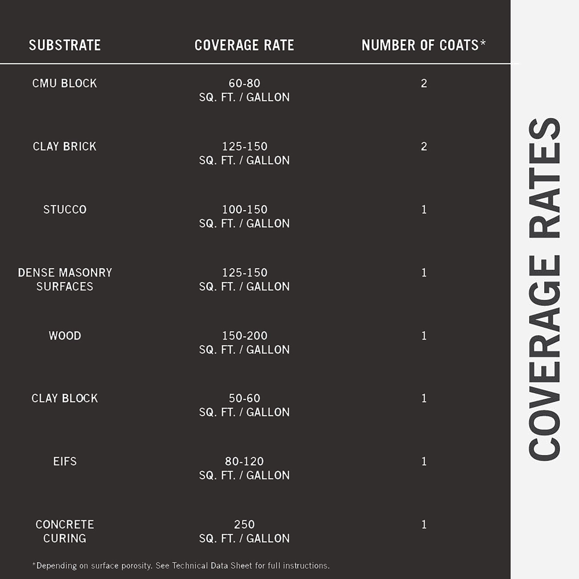 Coverage Rate: Approx. 40-200 sq. ft. / gallon (See TDS for details)
