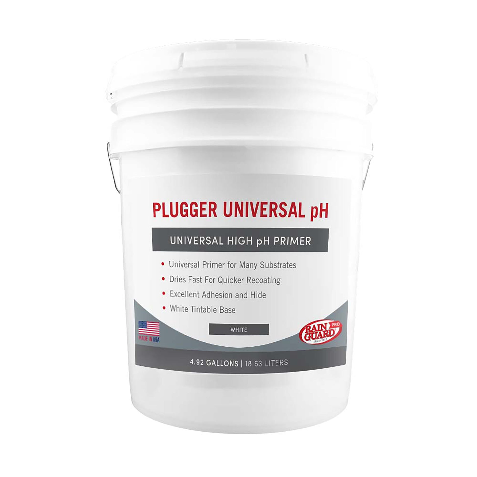 Plugger Universal pH is a self-cross-linking acrylic primer that can be used on metal, concrete, stucco, masonry, and previously painted surfaces. It is a rust inhibitive primer that can be top-coated with hot solvents or water-based coatings.