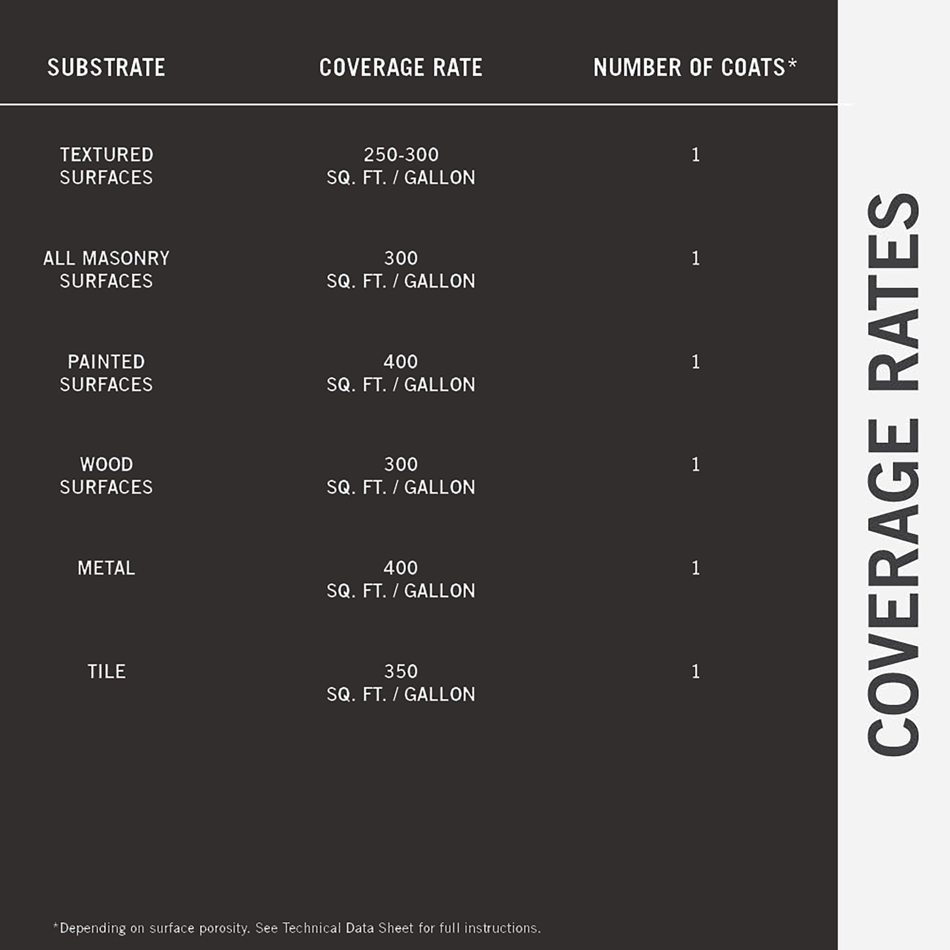 Coverage Rate: Approx. 250-400 sq. ft. / gallon (See TDS for details)
