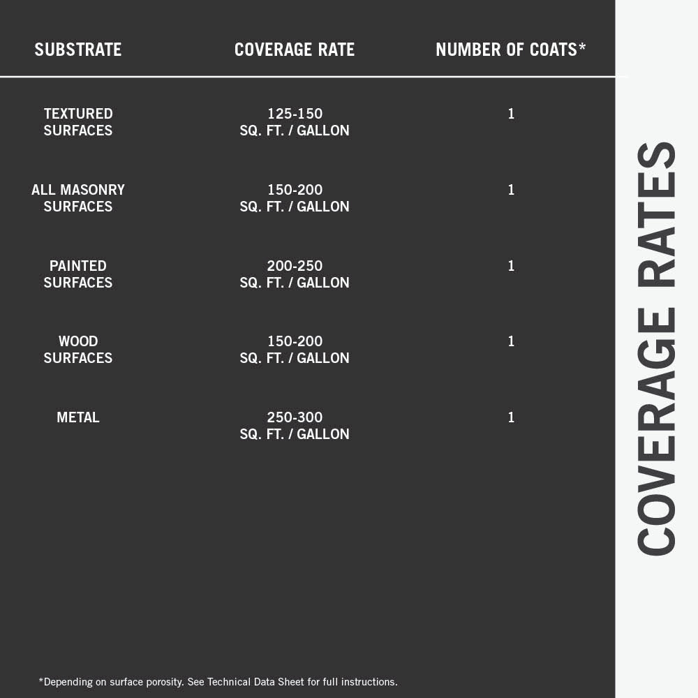 Coverage Rate: Approx. 125-300 sq. ft. / gallon (See TDS for details)
