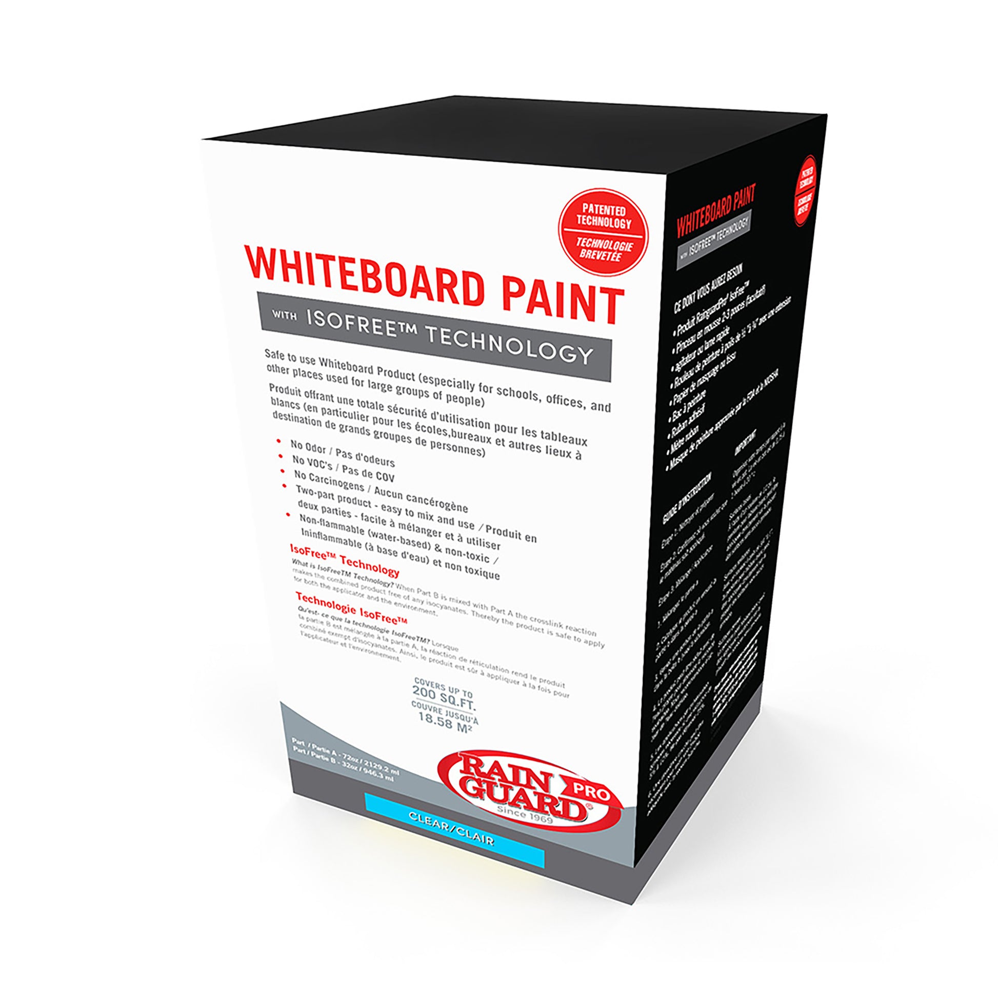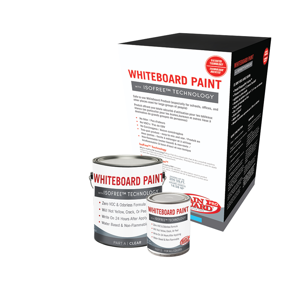Whiteboard Paint with IsoFree Technology is a two-component, high performance, eco-friendly zero-VOC, odorless, water-based, aliphatic polyurethane paint/coating. Whiteboard Paint is a dry erase coating that provides excellent adhesion and a durable surface to write on. Write on it with dry erase markers 72 hours after application.